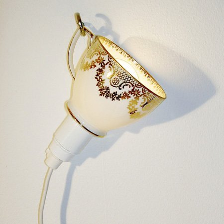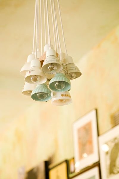 Эта оригинальная идея самодельного подарка-светильника перекочевала из журнала «Country living». Замечательная возможность утилизовать ненужный кухонный сервиз (или его остатки)!