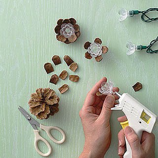 Для создания подобной конструкции понадобится всего лишь три компонента: картонная коробка, светоэлемент (светодиодные лампы или елочная гирлянда) и деревянная подставка
