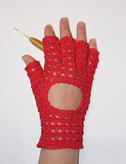 Не дойдя ст. б.н. до 2-х перекрестов, вяжу цепочку из 6-ти в.п. для основания мизинца и по рисунку вяжем 2 ряда. В последнем ряду для заужения не провязываю в.п. в перекресте.