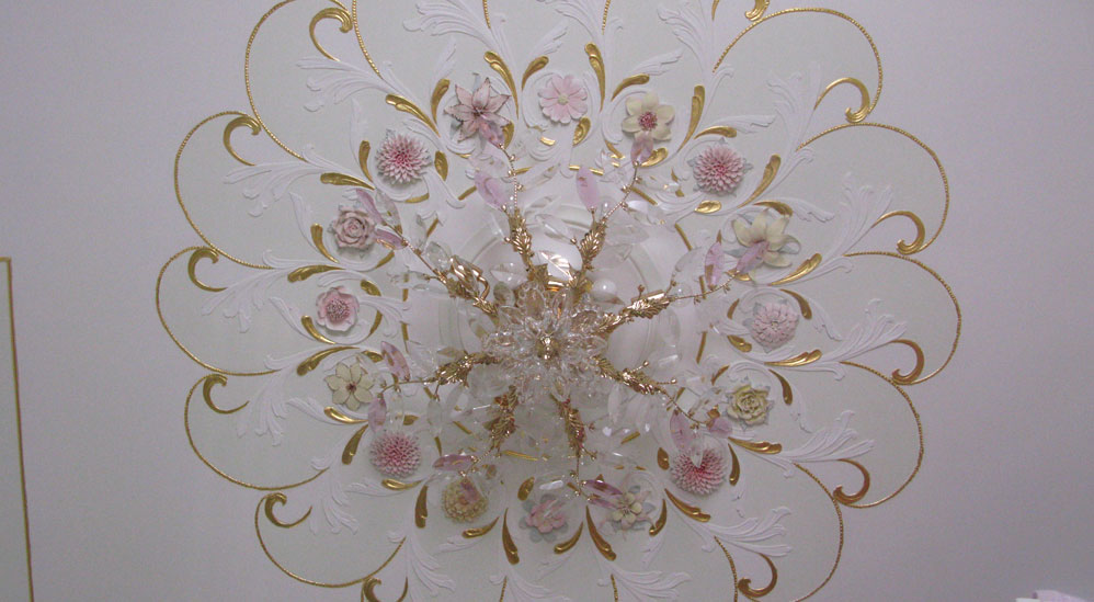 Гипс – натуральный материал, поэтому гипсовая лепнина – практически полная имитация настоящей. Она служит долго, практически не меняя свой внешний вид, к тому же улучшает микроклимат в квартире, поскольку поглощает из воздуха избыточную влагу, а когда необходимо – отдаёт. А вот избыточной влаги такой декор боится, поэтому в ванной комнате ему не место.