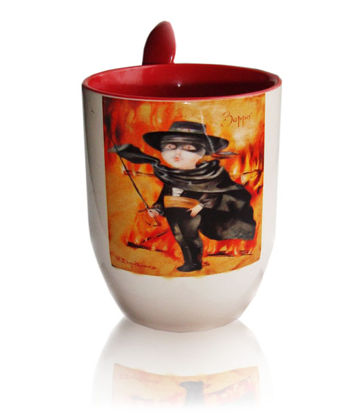 Чашка с керамической ложечкой (на фото её почти не видно, но она вставляется в ручку) с печатью моей картины "Зорро".