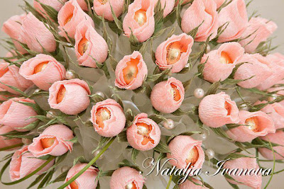 Часть 11 - Цветы из креп.бумаги с конфетой в середине