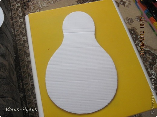 теперь обводим шаблон на картоне и вырезаем. таких заготовок должно быть 2.