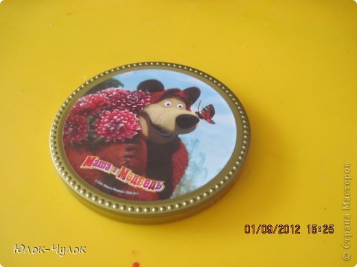 закрыла кругом из оберточной бумаги. подарок для мужчины, а тут "Маша и медведь"