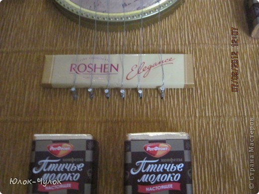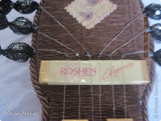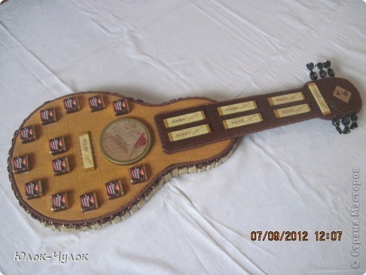 вот так.я подставила шоколадки, чтобы струны не лежали на самой гитаре да и так красивее.