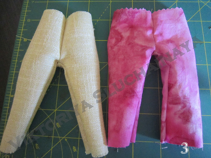 Складываем и прошиваем. Шьются штанишки по типу штанов как у тильдовского зайца.