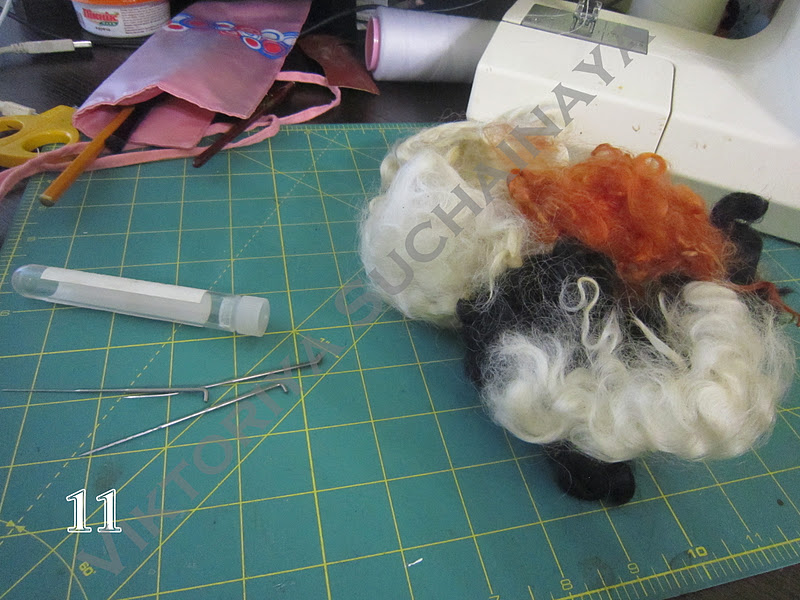 Далее приступаем к прическе, берем шерсть и иглы для валяния