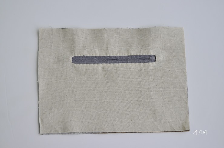 2. Fold the tab WST, folding the raw edge and aliging it with the sewed edge. Sew along, closed to the edge. Repeat for the other zipper tab.