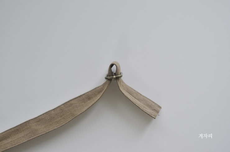 12. Fold the canvas strip, covering the cotton strap. Hide the raw edge and topstitch along long edges. Add additional rows of topstitching as desired.