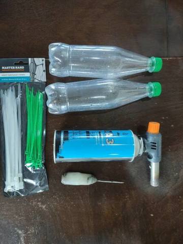 В первую очередь, нам необходимо раскалить шило. Для этого дела можно использовать газовую горелку. Это необходимо для того, чтобы с лёгкостью сделать отверстия в пластиковых бутылках.