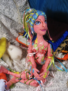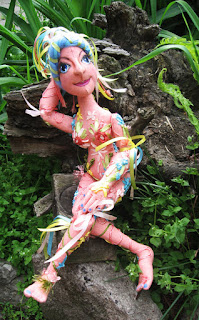 Ну и куколка, вылепленная моей дочерью Олесей, но тоже в недоделках пока... А баночку я дополнила божьими коровками и малость подзолотила, ну а рядом конфетки в цветочках.:))