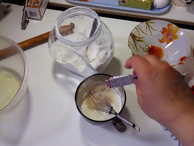 Сначала нужно дать подняться дрожжам: в 0,5 стакана теплого молока добавляем 1 ч.л. сахара, 1 ст.л. муки и пачку дрожжей