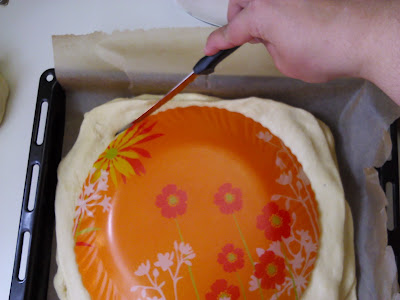 Теперь берем нож и делим круг на 8 секторов, не дорезая до середины ок 2-2,5 см