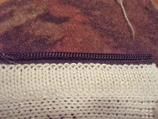 3-й ряд (лицевая сторона) - довязав до горловины, провязываем 2 последние петли вместе лицевой, нить основного клубка оставляем, берем нить дополнительного, закрываем 3 петли косичкой и довязываем ряд до конца;