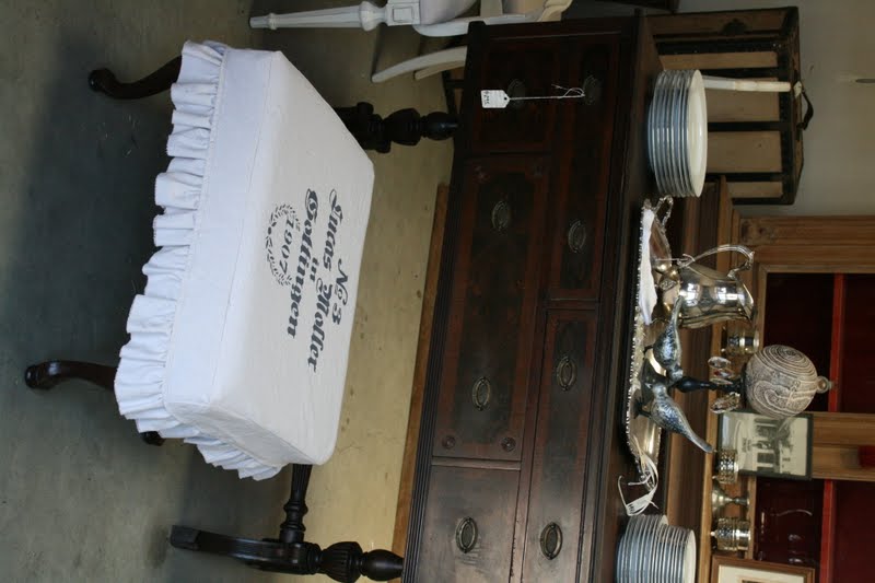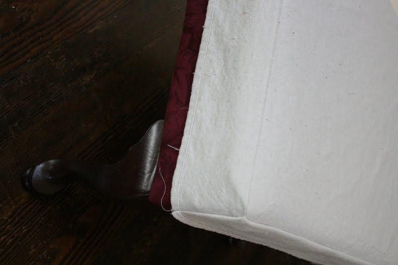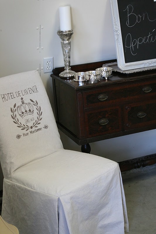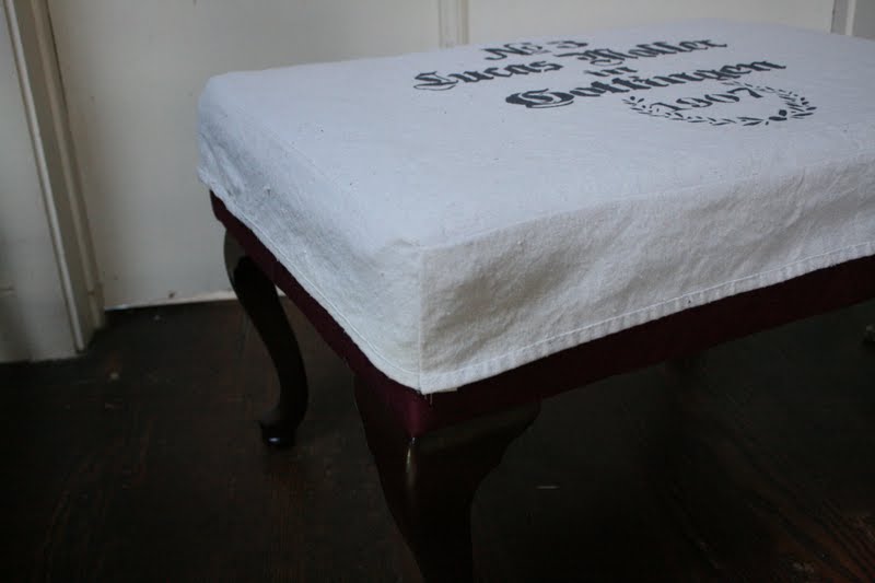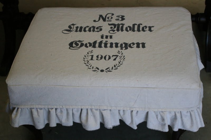 Если душа категорически просит атмосферы винтажности в доме, можно сшить вот такие замечательные чехлы из грубой ткани для стульев или пуфа.