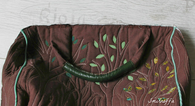 Потом ручкой обкрутила толстый шнур и закрепила ручным швом.