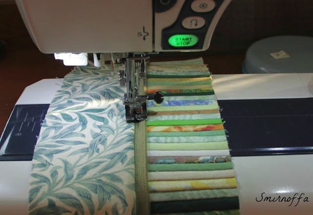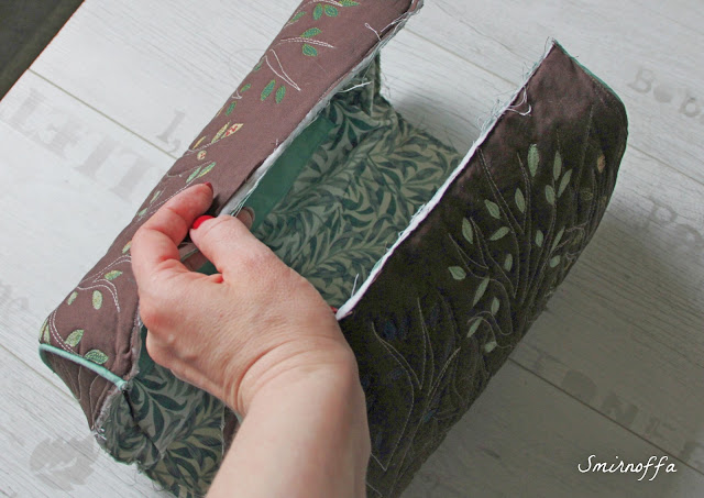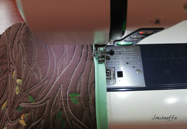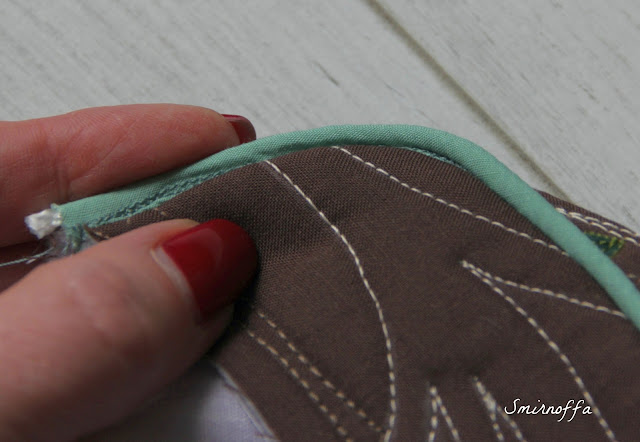 Последний этап - обработка срезов косой бейкой. Я делаю это по-квилтерски. С одной стороны пришиваю на машине, С другой руками.