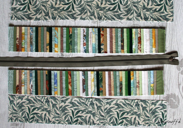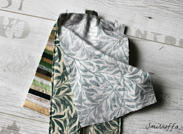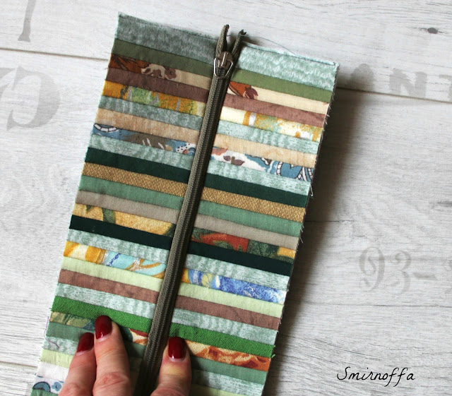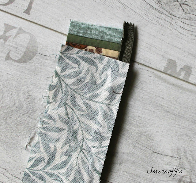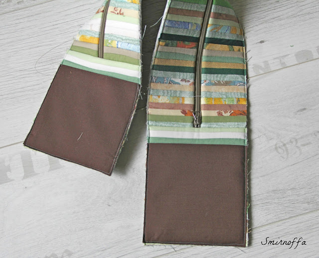 Теперь к "колбасе" прикрепляем карманы. Здесь я просто сгибаю карман, укрепленный флизелином пополам. Но все зависит от модели сумки, можно из этих карманов сделать самый красивое место в сумке. Почему бы и нет...