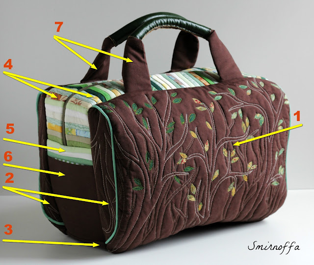 Из подкладочной ткани выкраиваем детали 1 - 5 таких же размеров.