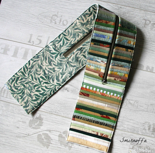 Теперь отглаживаем, выравниваем срезы, отстрачиваем боковинки по краю. И вот такая "колбаса" у нас получилась:).