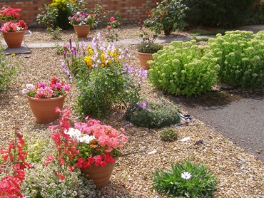 В садах, не требующих тщательного ухода, большие участки часто засыпают гравием или выкладывают камнями или плитками, засаживая их почвопокровным и растениями и обрамляя кустарниками.