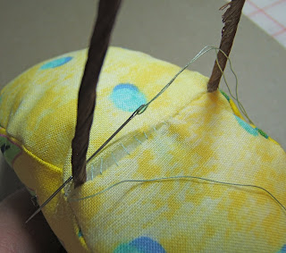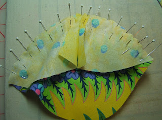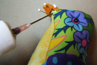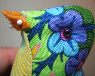 5) Теперь накалываем деталь пузика к детали бока птички – и сшиваем вместе.