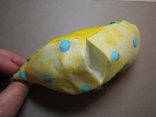 7)Выворачиваем сшитую птичку и набиваем, но не слишком туго – мы же не наседку на яйца сажаем! Оставляем небольшое отверстие незашитым.