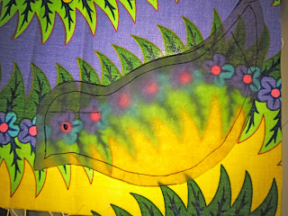 2) прикладываем шаблоны к ткани и ищем оптимальное расположение узора. Обратите внимание, что на фотографии тельце птички выкроено из бордюрного лоскута, что придает ей особый шарм.