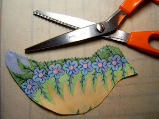 4) совет – все изогнутые детали птички (а собственно, прямых там и нет) обработайте ножницами-зигзагом, так будет проще сшивать.