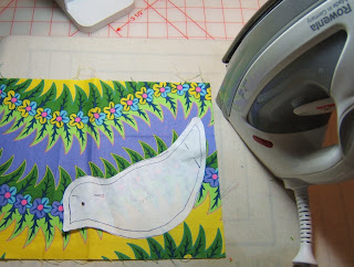Автор, Nellie Bass Durand, рекомендует перевести выкройки на бумагу для заморозки. Вы прикладываете бумагу блестящим краем к ткани и легонько приглаживаете утюгом. После этого вырезать птичку будет проще, чем если бы вы просто прикололи выкройку к ткани булавками. Маленький совет – можно воспользоваться специальными ножницами для аппликаций, так ваши детали будут вырезаны гораздо точнее.