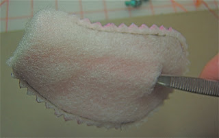 10) прострачиваем наши крылья, прорезаем небольшое отверстие, и выворачиваем крыло налицо.