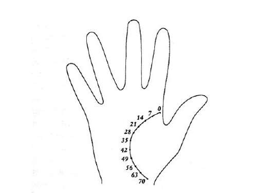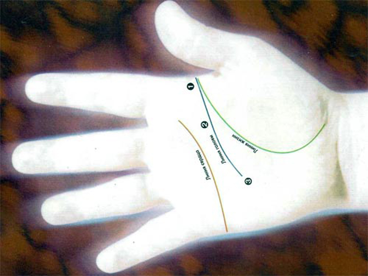 Для начала необходимо отыскать эту знаковую линию. Расположена она между двумя пальцами: указательным и пальцем Сатурна; окончание ее раздваивается на линии сердца. То есть, если линия имеет конец в виде вилки, то богатства не избежать.