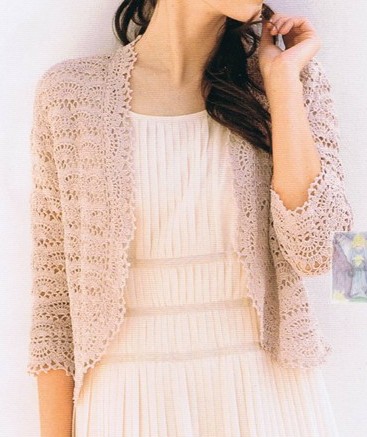 Жакет-кейп – это незаменимая вещь в вашем гардеробе. Украшением является объемный шалевый воротник с простым геометрическим узором.