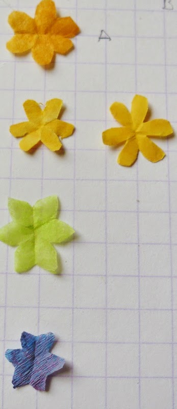 Тестирование полученной (сверху вниз) из рисовой бумаги, папиросной бумаги (окрашены в желтый и зеленый) гофрированная бумага