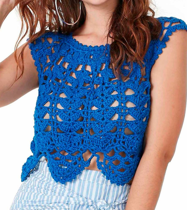 Ажурный топ с диагональными вставками из узора паучки. Как связать топ крючком схемы