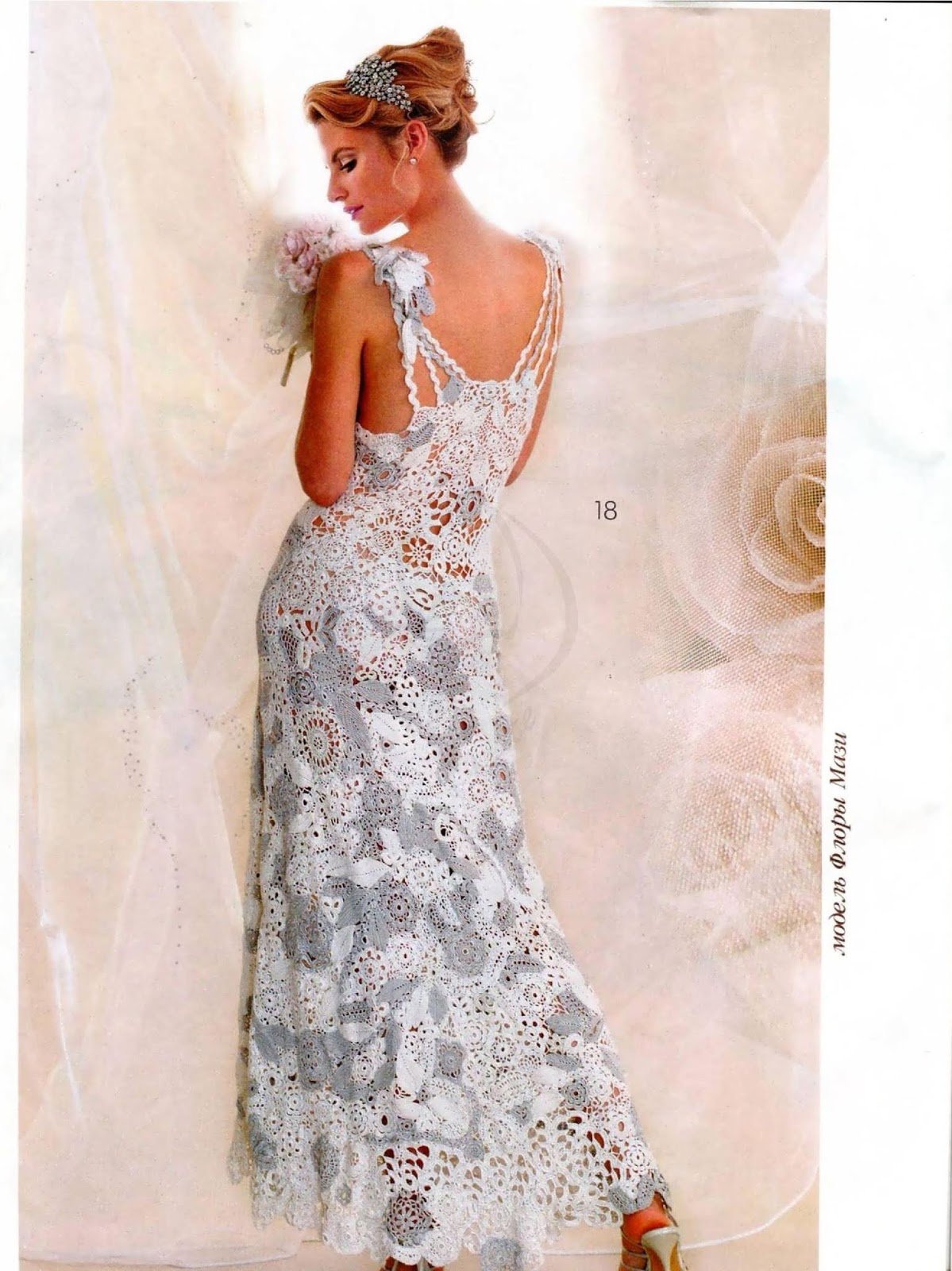 Платье из цветочных мотивов крючком. Описание вязания платья из мотивов