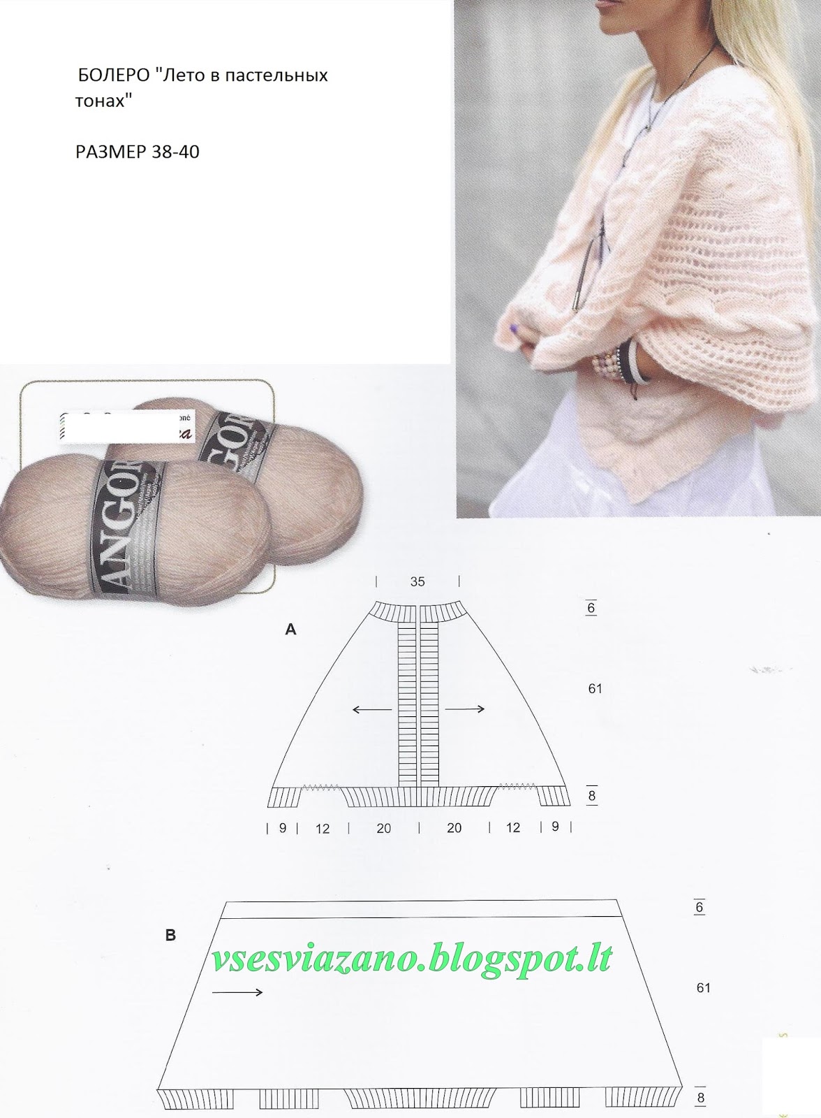 Короткий жакет нестандартной формы по интересной выкройке или болеро ( у хорошего дитя много имён!) - очень красив именно в пастельных тонах и срочно нужен в твоем гардеробе, уважаемая Вязальщица!