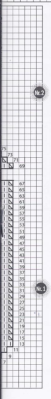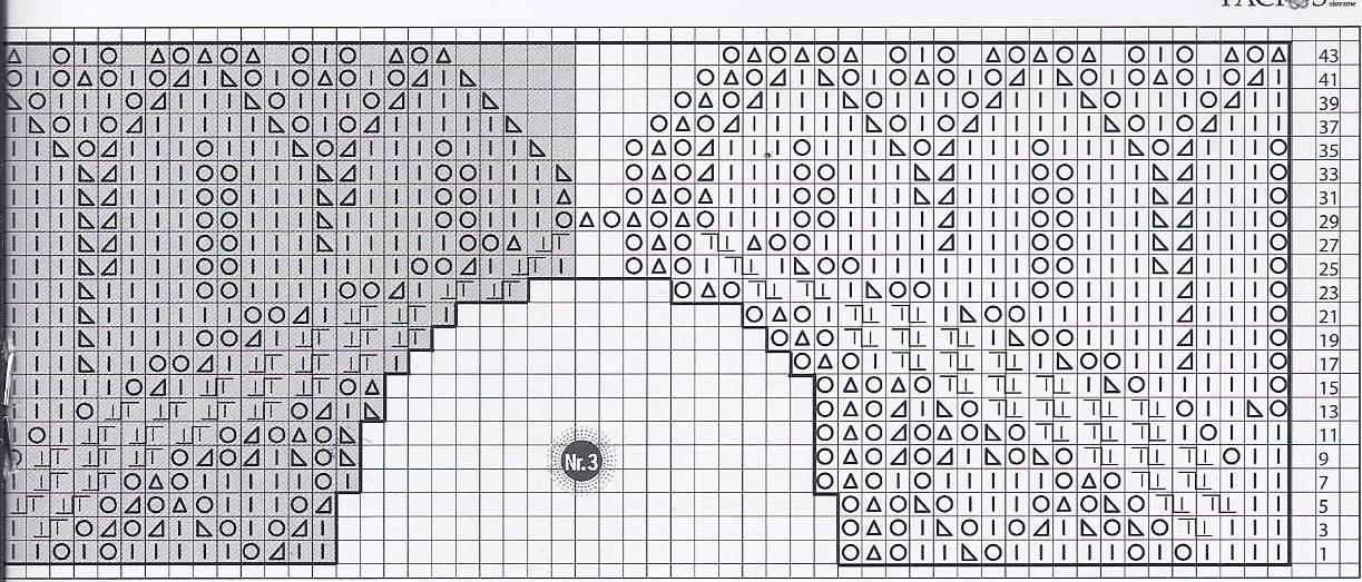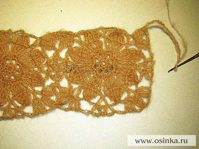 10. А это — уже следующий элемент. На схеме он справа от центрального. Плетение начинается (и продолжается) так же, со второго ряда самой широкой части. Я начала снизу. Таких элементов (по итогу получится полоска шириной 3,5 и длиной почти 30.5 см) должно быть два.