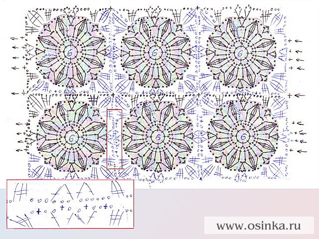 Обратите внимание: сверху плетение начинается со ВТОРОГО ряда широкого участка, на котором нет убавлений. Внизу этот ряд есть.