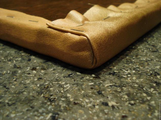 Поскольку у меня была не очень плотная джинсовая ткань и дублирования было недостаточно, я дополнительно уплотняла сумку подложкой для ламината