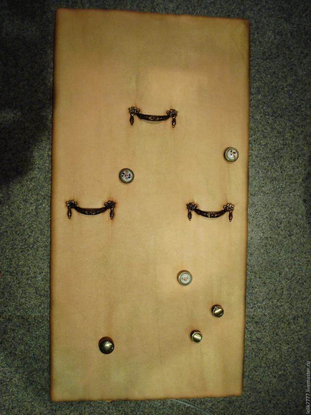 Золото высохло быстро. Приступаем к ручкам для ящичков. Для ручек можно взять всё, чем богата ваша фантазия. Моя фантазия в этот раз остановилась на вот таких штучках.