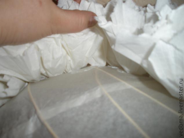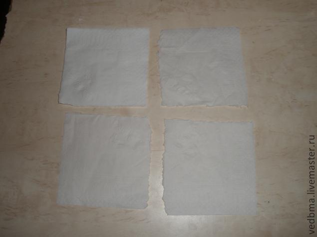 Нарвать бумагу на 4 части, смять, распрямить, смазать клеем ПВА (развести немного водой) и, сминая и создавая заломы, приклеить.