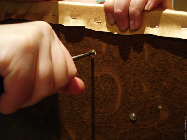 Хорошо всё это дело причпокнуть, чтобы не было воздуха. Так, кусочек за кусочком, обклеить весь комод.