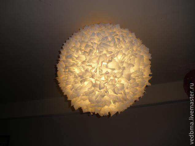 И наконец я ее повесила в спальне.Абажур не тяжелый.поэтому не оторвется ))