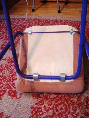 А что же нам сделать с шарфами? Подушек уже решительно хватит! И тогда я вспомнила - не так давно дочери подарили комплект детской мебели - столик для рисования и к нему стульчик в комплекте. Ну, стол есть стол, о нем разговор как-нибудь в другой раз поведем, пока он нас вполне устраивает, дочь к рисунку, изображенному на его деревянной столешнице, добавляет фломастерами свои авторские элементы