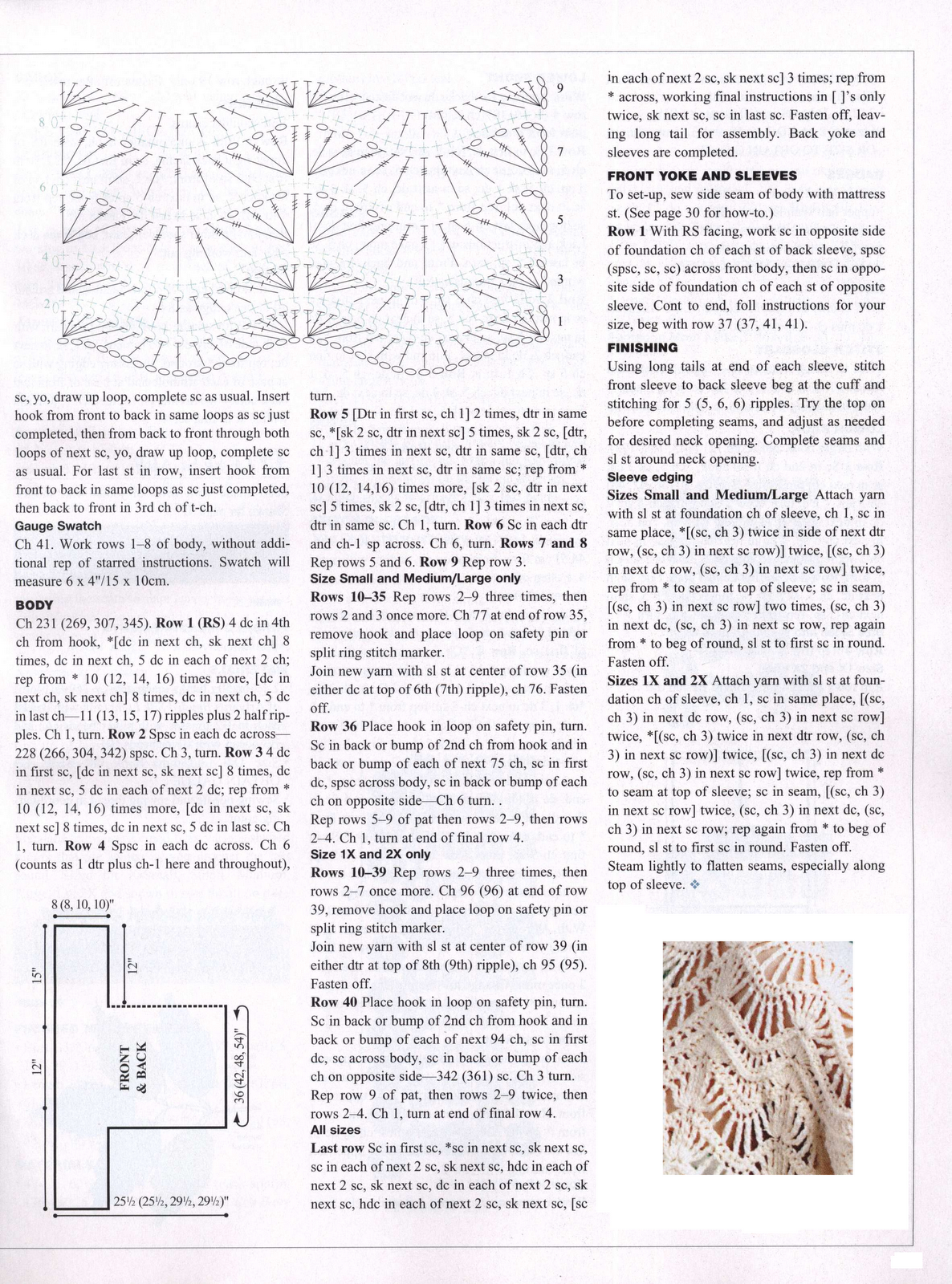 Белая блузка крючком. Пять размеров, схемы вязания |