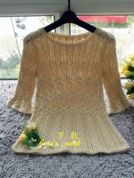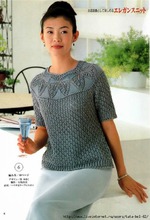 Пуловер крючком с поперечными ажурными полосками и ромбами из пряжи с люрексом. Без схемы. |
