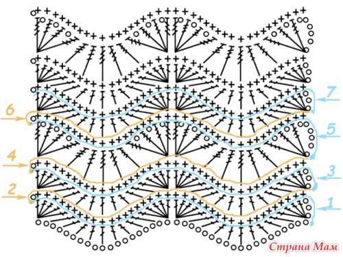 только пятый и шестой ряды схемы я не провязывала - пропускала.