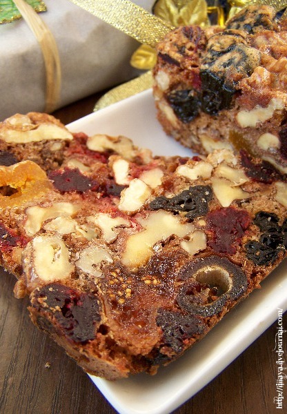 Фруктовый кекс. Его можно приготовить к Рождеству, и приготовить заблаговременно, потому что он чудно хранится (и чем дольше, тем вкусней становится). Готовый кекс достаточно завернуть в пергамет, и при комнатной температуре можно хранить месяц, в холодильнике не менее трех, а заморозить можно вообще на полгода))