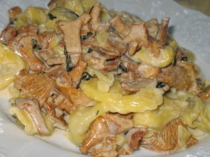 Ввести в грибной соус отваренные согласно указаниям на упаковке тортеллини и прогреть все вместе еще 3-5 минут. Подавать немедленно на подогретых тарелках.